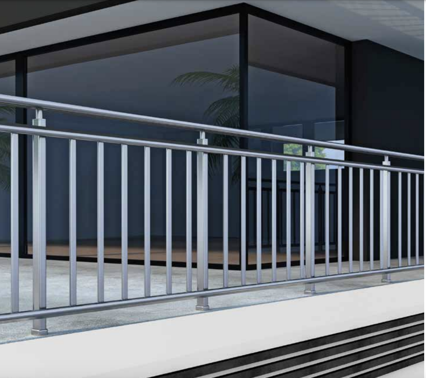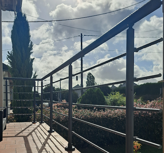 Fixation latérale sur le nez de dalle ou le mur, idéale pour optimiser l’espace sur une terrasse ou un balcon.