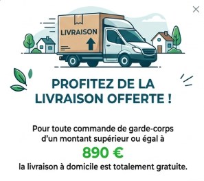 Indiquez simplement la longueur totale de votre garde-corps souhaitée, arrondie au mètre supérieur.